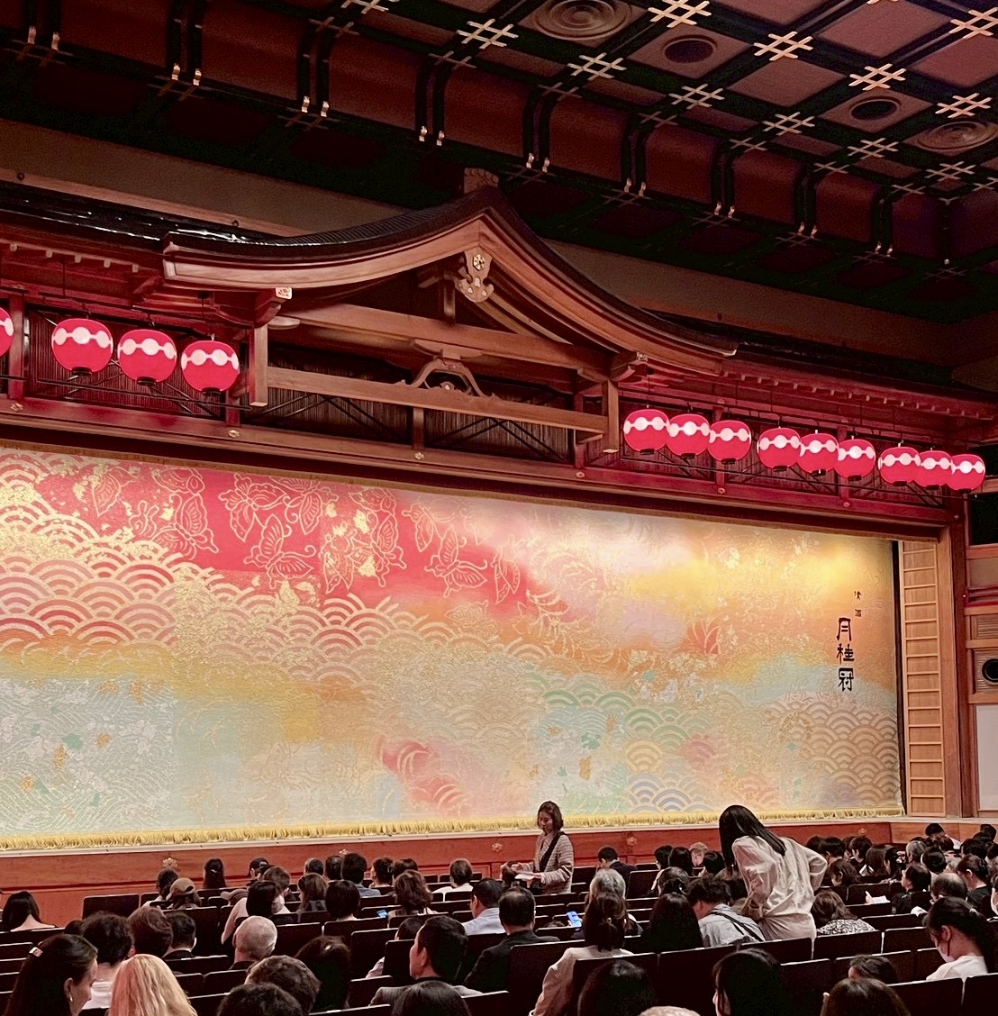 お席に着くと、目の前には本舞台、そして左右の「花道」から舞妓さんたちが登場する様子も見ることができるお席でした!