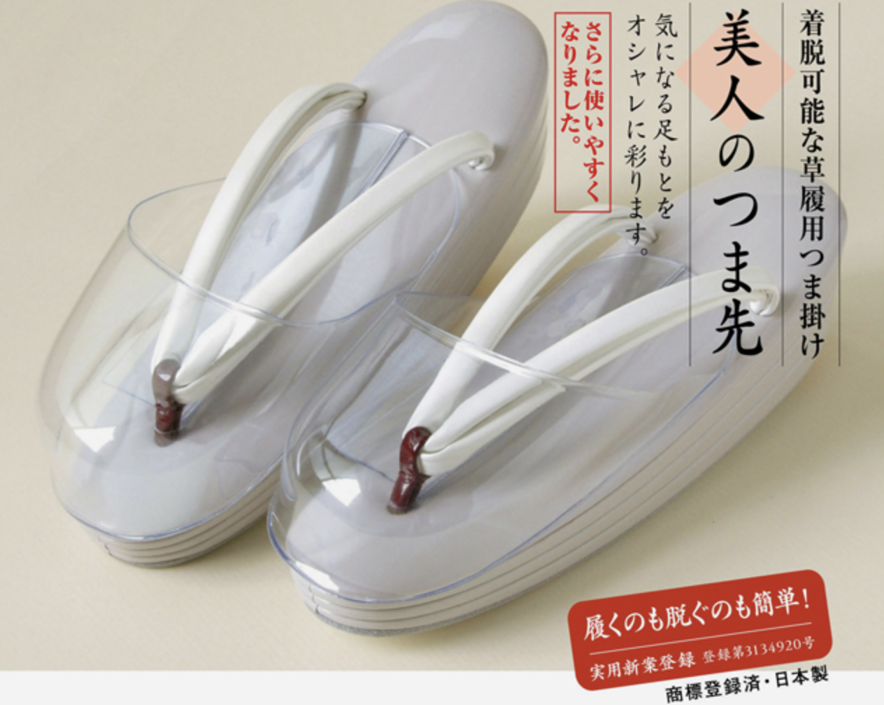 普段履きとして使っているカレンブロッソのカフェ草履は、裏に鼻緒の挿げ穴がないため雨が染み込む心配がありません。ですので、カフェ草履にこの「美人のつま先」を付けると雨の日のお出掛けにも使えて一石二鳥なのです。