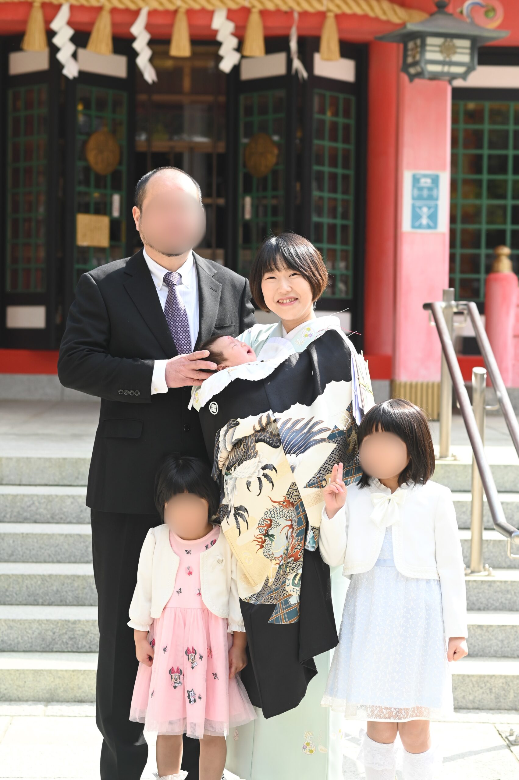 家族5人で撮ったのは4年前の第三子のお宮参りが最後です。