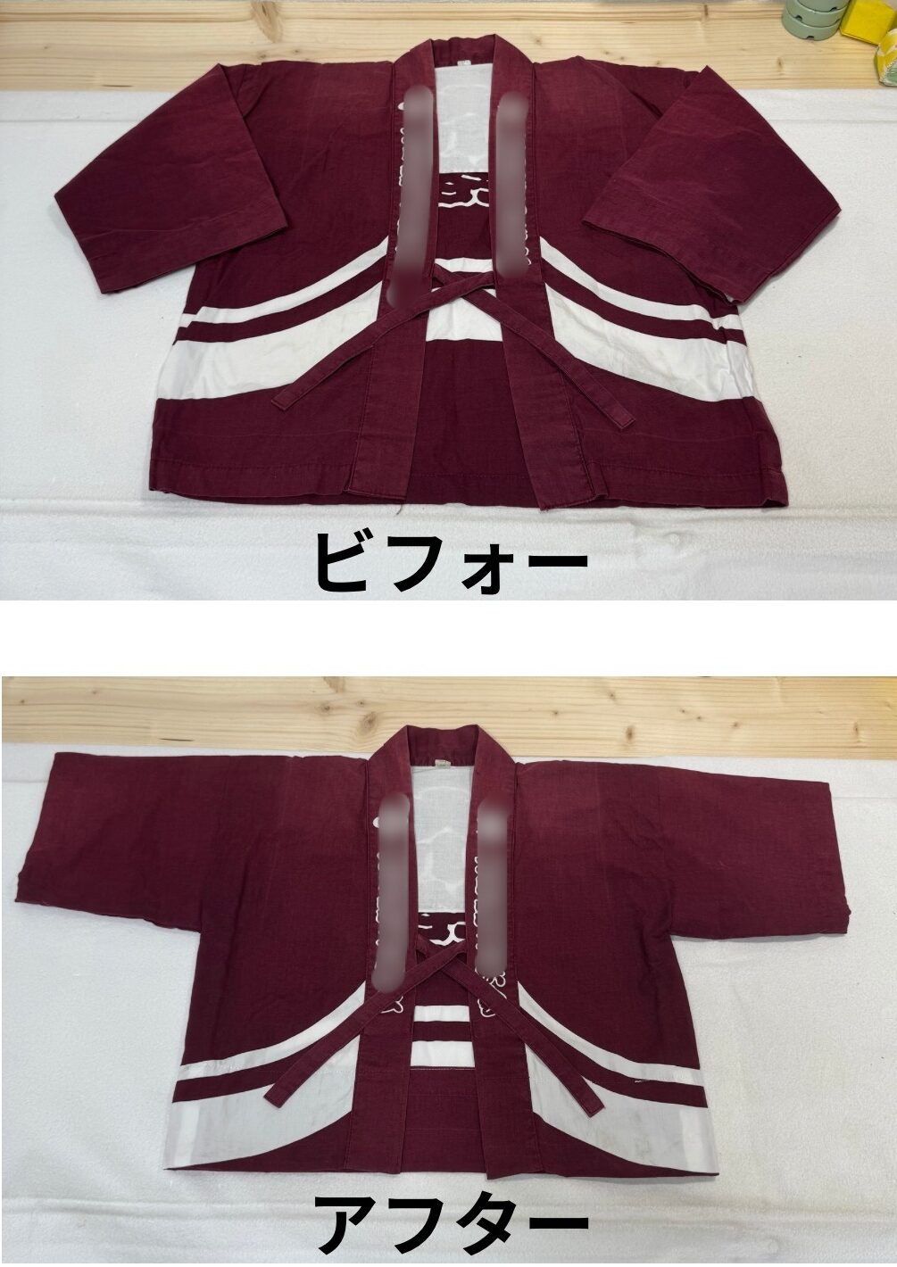 先日、3歳のお子様用に法被のサイズ直しをご依頼いただきました。
