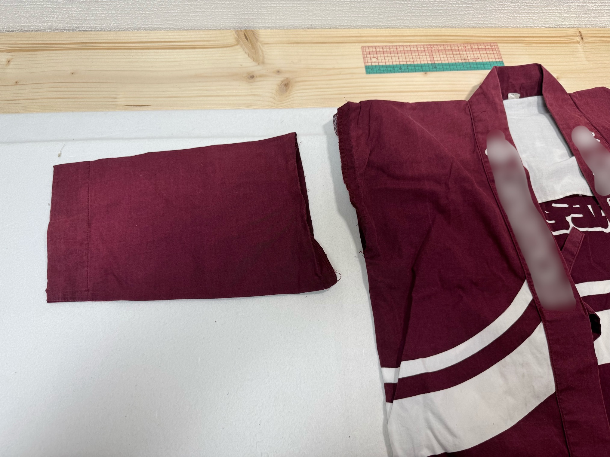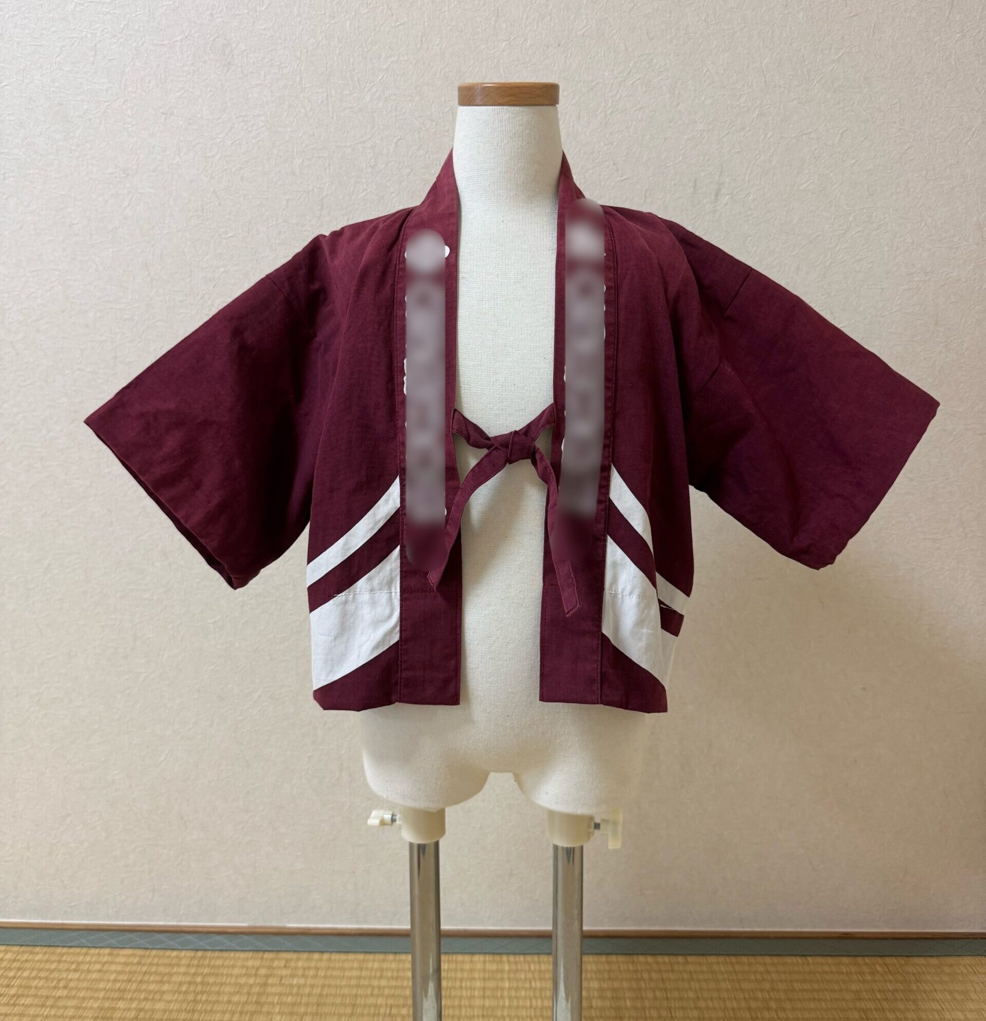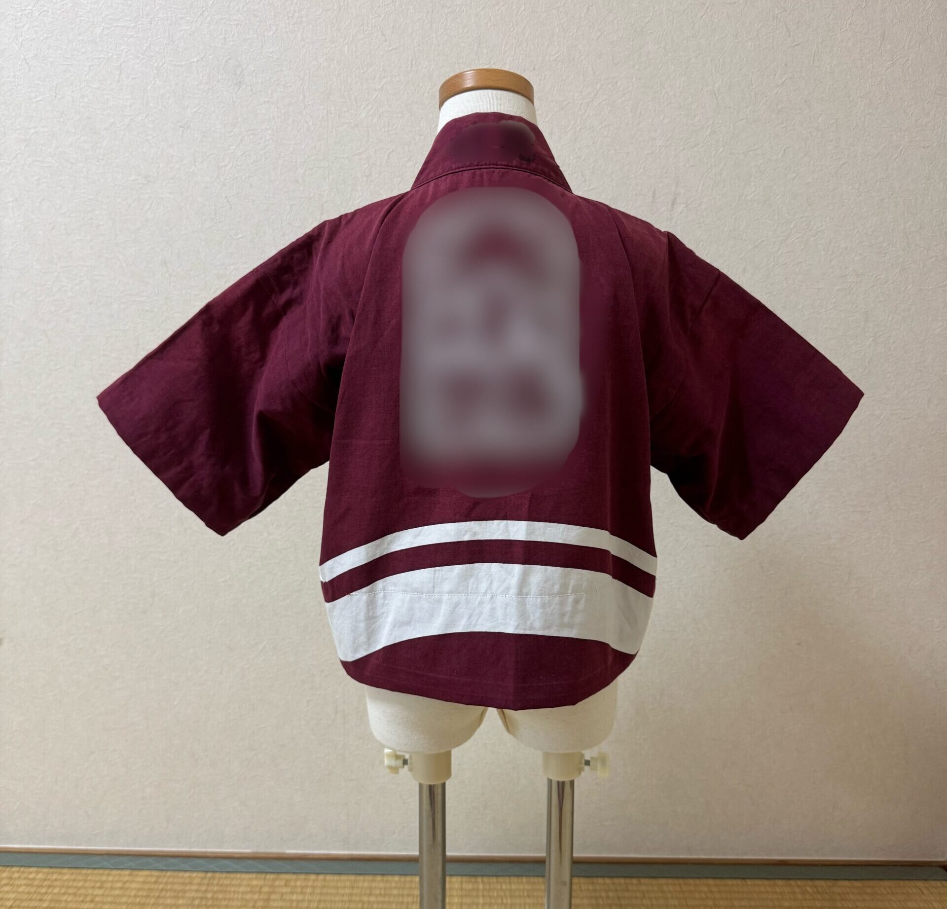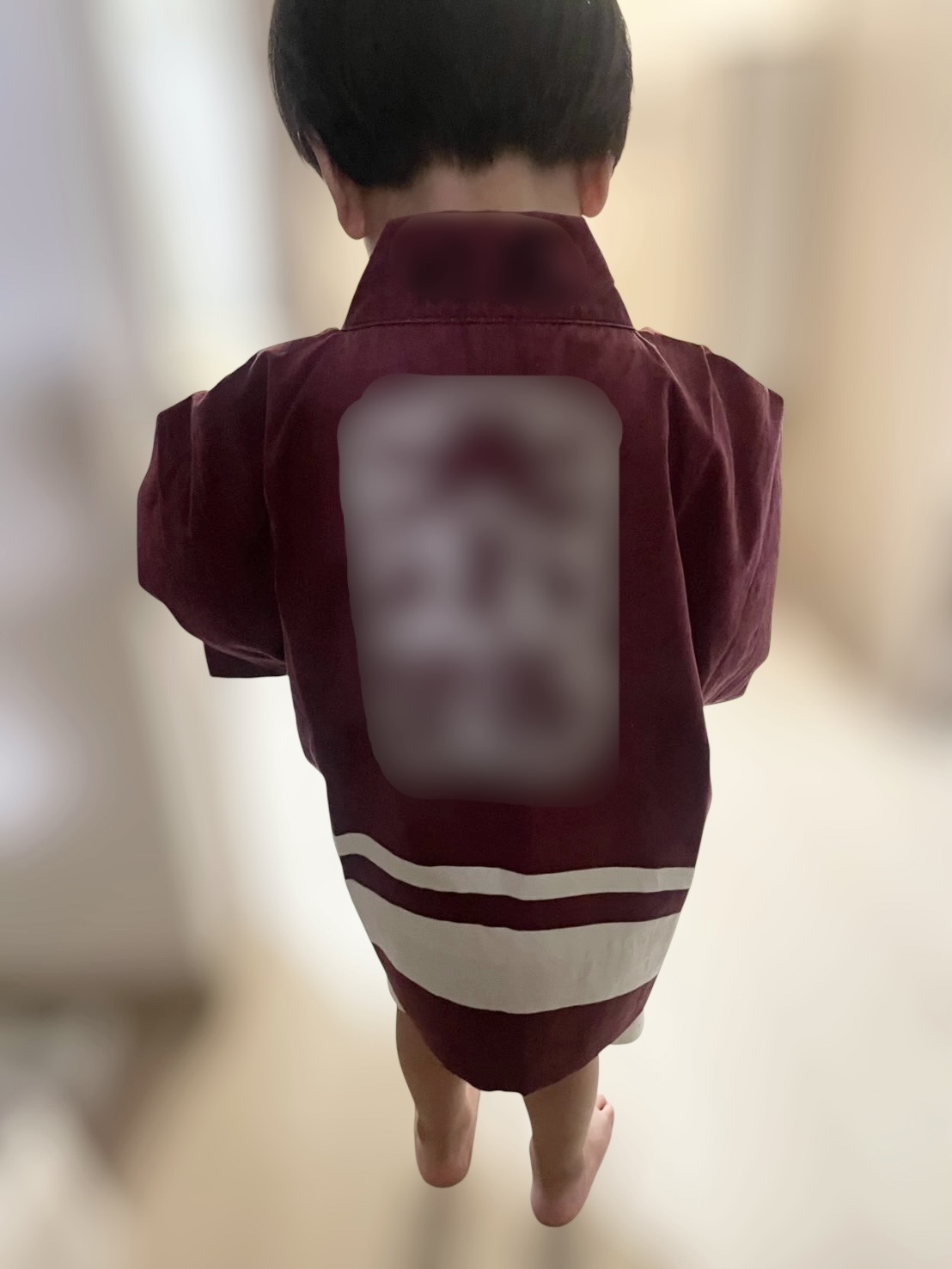 もともと子供用の法被ではありましたが、小柄なお子様には少し大きすぎるとのことで、より快適に着ていただけるよう寸法を調整しました。