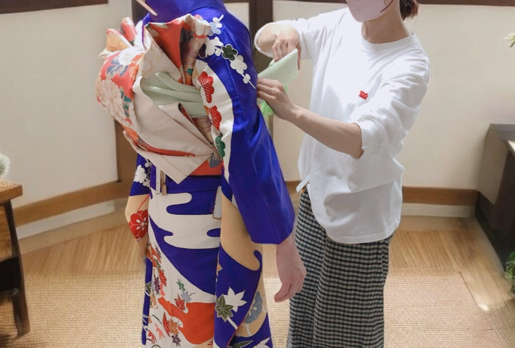振袖+袋帯で変化結び(6種類より当日指定)を30分で着せる - 卒業試験